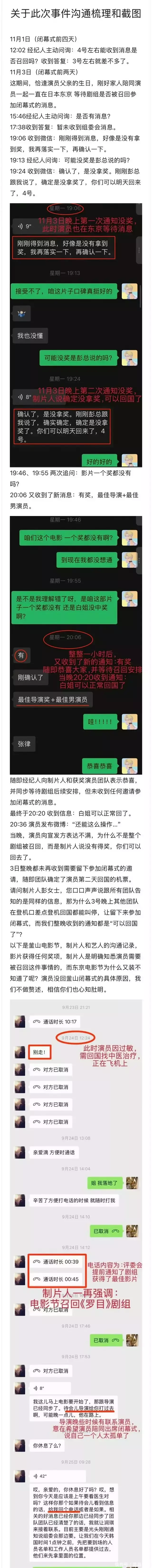 白百何白姐的“一点气都不受”,在东京电影节事件中体现得淋漓尽致。微博上连着两次发文后,其工作室随后公布了时间线,具体如图下: